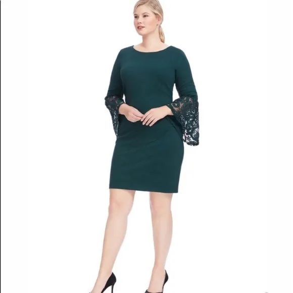 Nanette Lepore Suede Lace Bell Sleeve Dress Size 4 Zip up back Beautiful deep green color Back slit... Show more