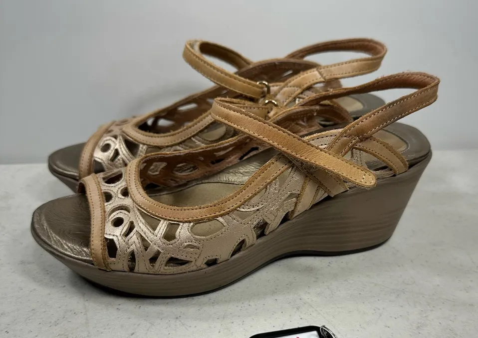 NAOT Deluxe Pewter + Rose Gold Metallic Leather Wedge Heel Comfort Sandals 37-6 Tan - $38 - From Jean