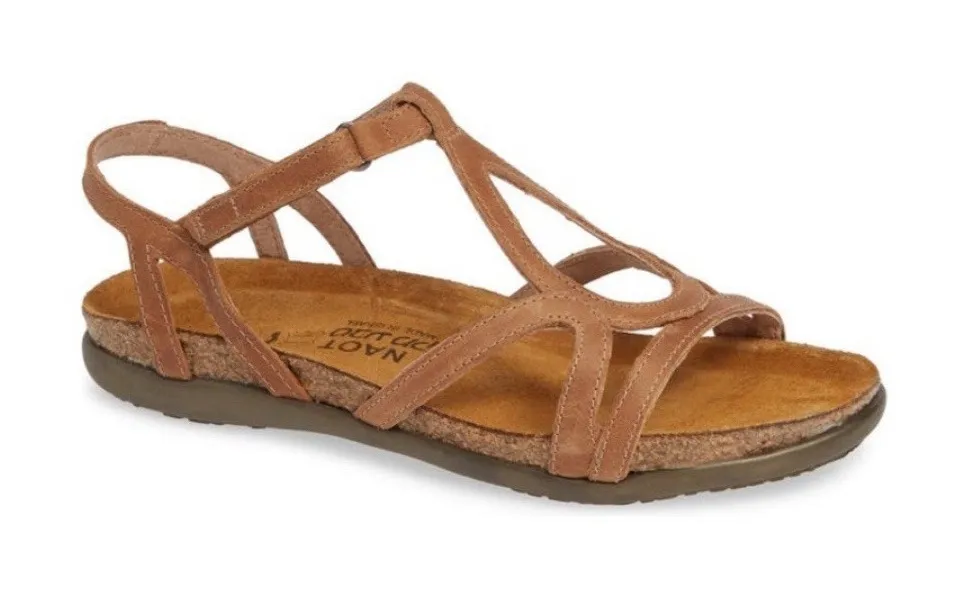 The Naot Dorith sandals in women's size 43 (US 12) are a stylish and comfortable option for casual wear. These strappy slingback flats feature a hook and loop closure for easy adjustment. Made with leather and a breathable polyurethane outsole, these sandals are perfect for summer, fall, and spring. The tan color and solid pattern make them versatile for various outfits, while the adjustable straps and comfortable insole provide added convenience and support. Designed by the reputable brand Naot, these sandals are a practical and fashionable choice for everyday wear. 22219