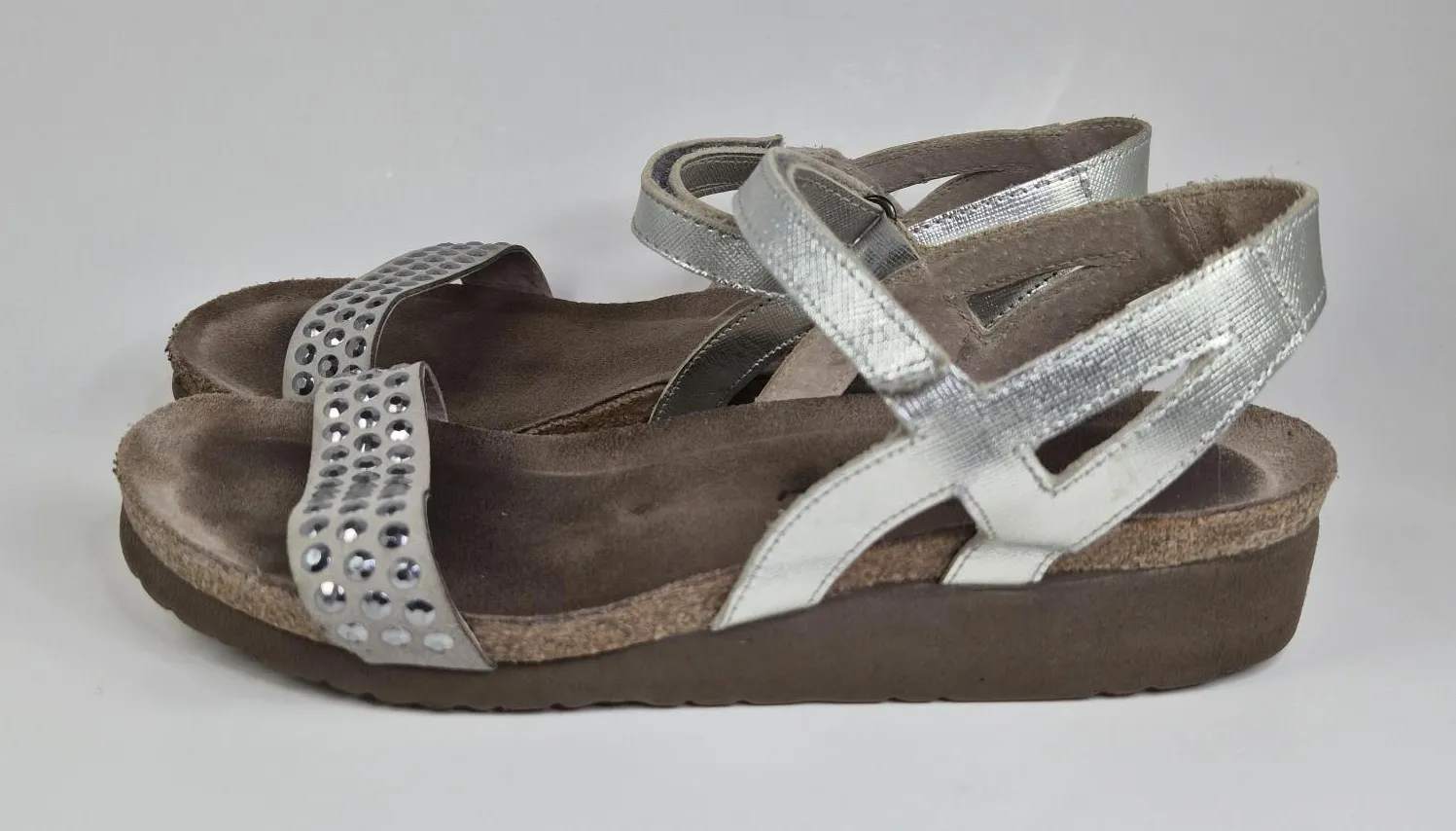 The Naot Women’s Hero strappy wedge sandals in size EUR 40 and US 9 M are a stylish and comfortable choice for women. With a slip-on closure, mid-height wedge heel, and strappy design, these sandals are perfect for everyday wear. Made of leather and featuring a silver color, they offer both durability and a fashionable look. The Naot brand is known for its quality and support, making these sandals a reliable option for women on the go.