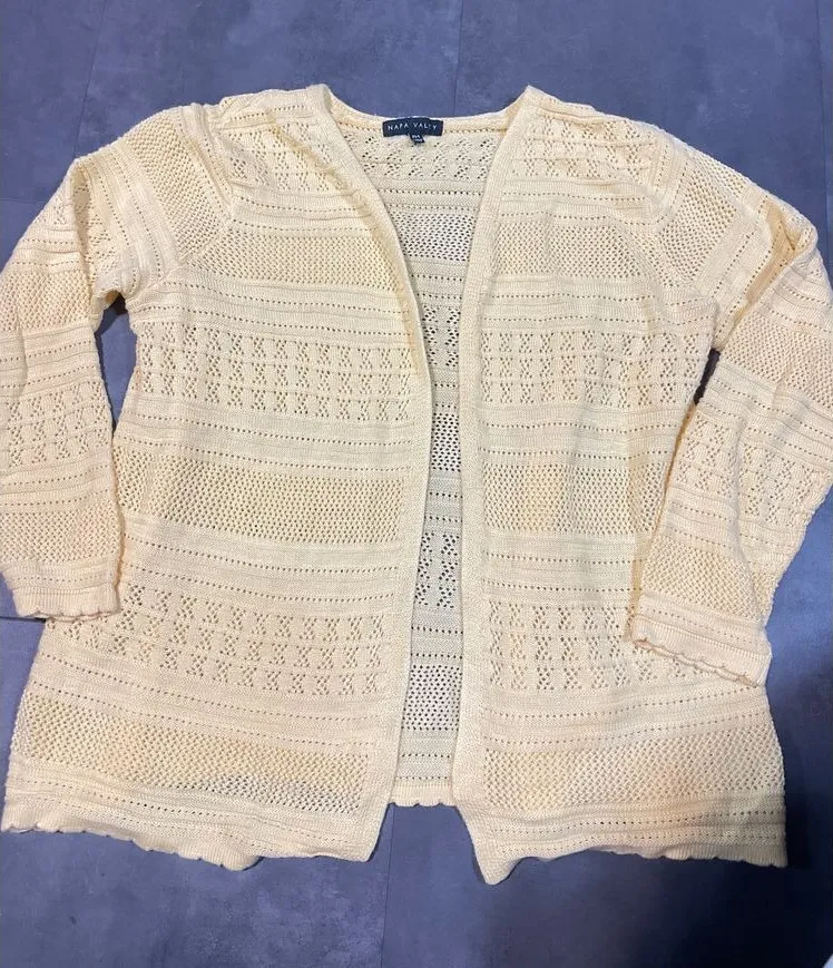 Elevate your summer wardrobe with this exquisite Napa Valley cream crochet knit sweater. Perfect for bohemian-inspired looks, this versatile piece effortlessly transitions from beach cover-up to evening wear. Its intricate pattern adds texture and interest to any outfit, making it ideal for festivals, outdoor concerts, or romantic sunset dinners. Layer it over a slip dress or pair with your favorite denim for a chic, laid-back look that embodies carefree summer style. Keywords: Napa Valley, crochet, knit, sweater, cream, boho, bohemian, summer, layering, beach cover-up, festival wear, lightweight
