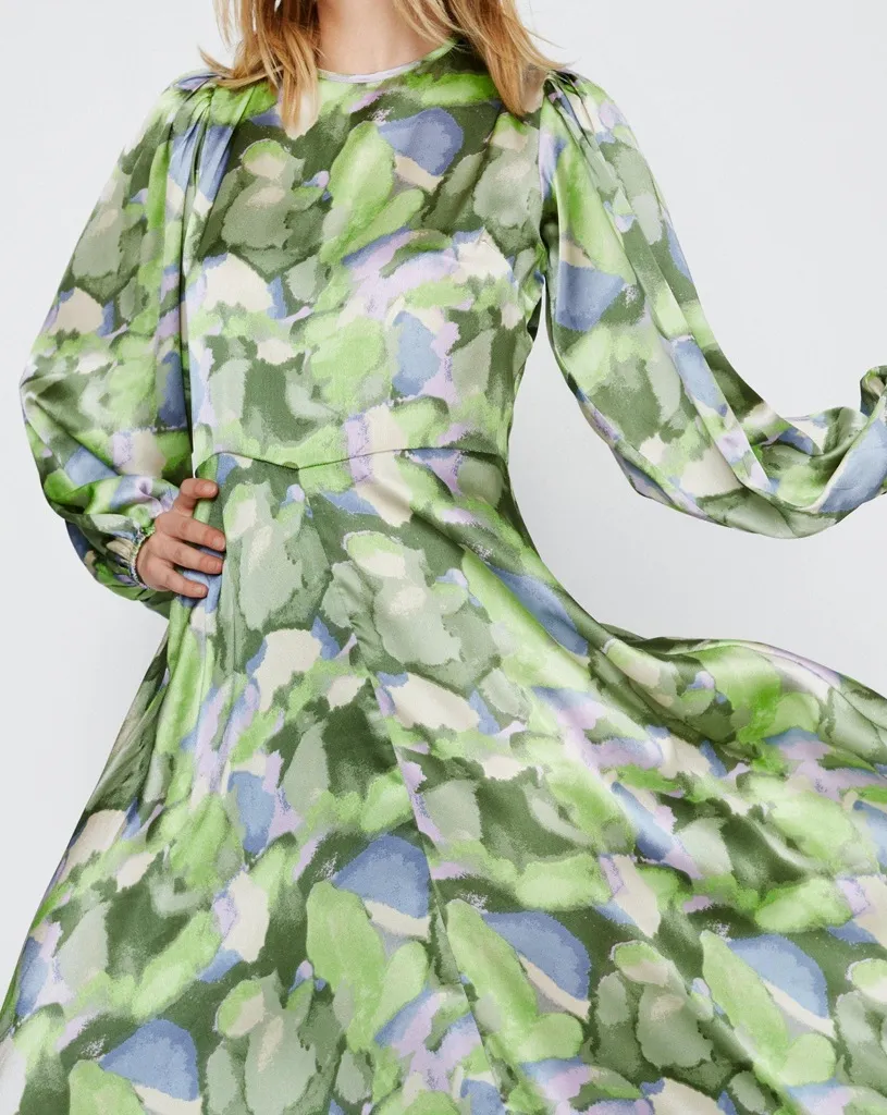 NEW WITH TAGS Nasty Gal Loose Fit Oversized Silhouette Maxi length Abstract Green with splashe... Show more