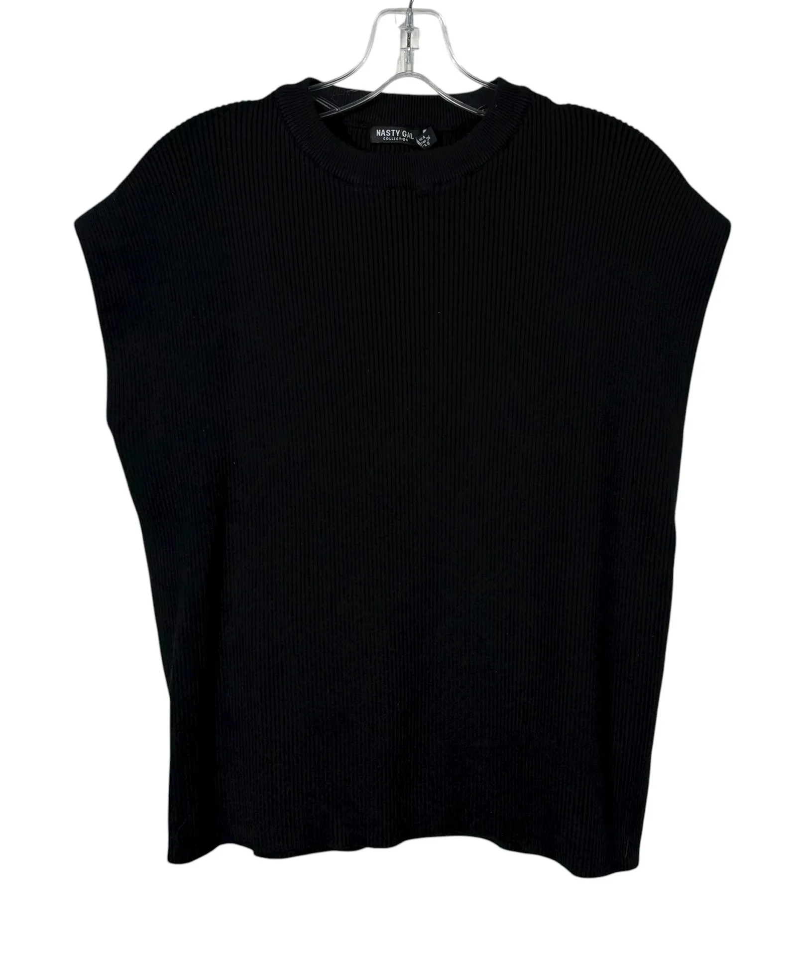 In good condition! Solid black color in a stretchy knit material. Sleeveless cut, great for layering... Show more