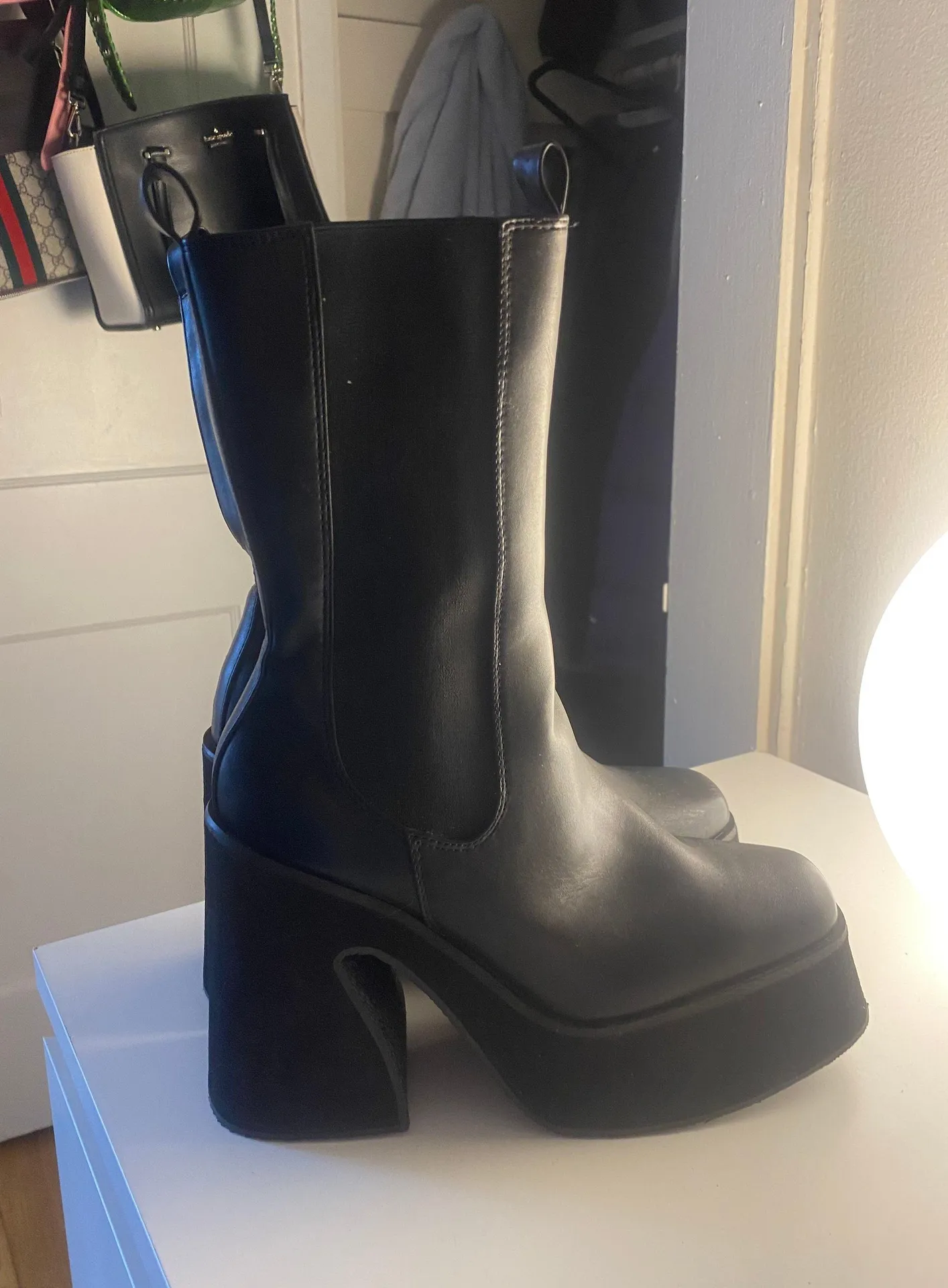 Loved these boots I just can’t walk in heels. So cute in person- says size 4 but U.S 6