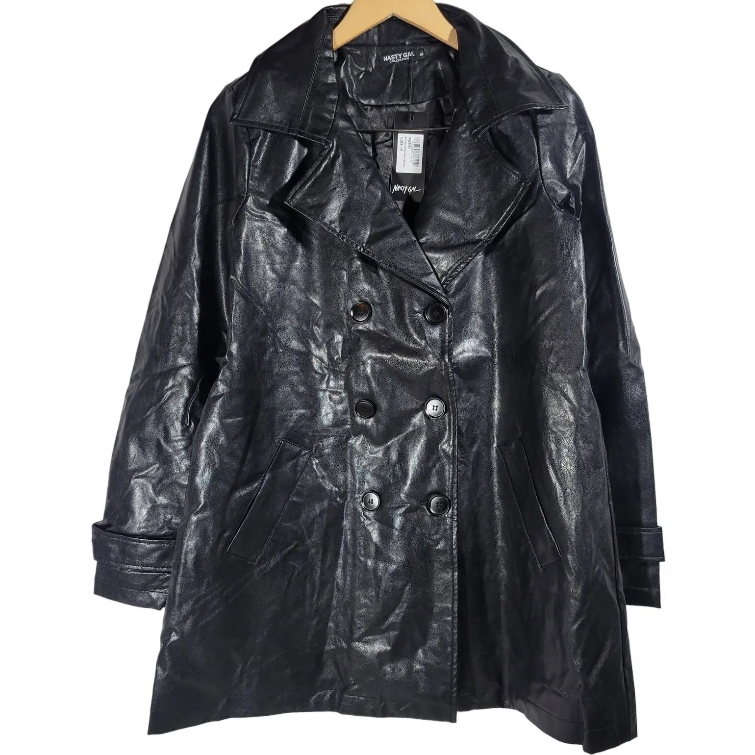 Nasty Gal Collection Black Faux Leather Longline Trench Coat Jacket Women's M New with tags Tagged... Show more