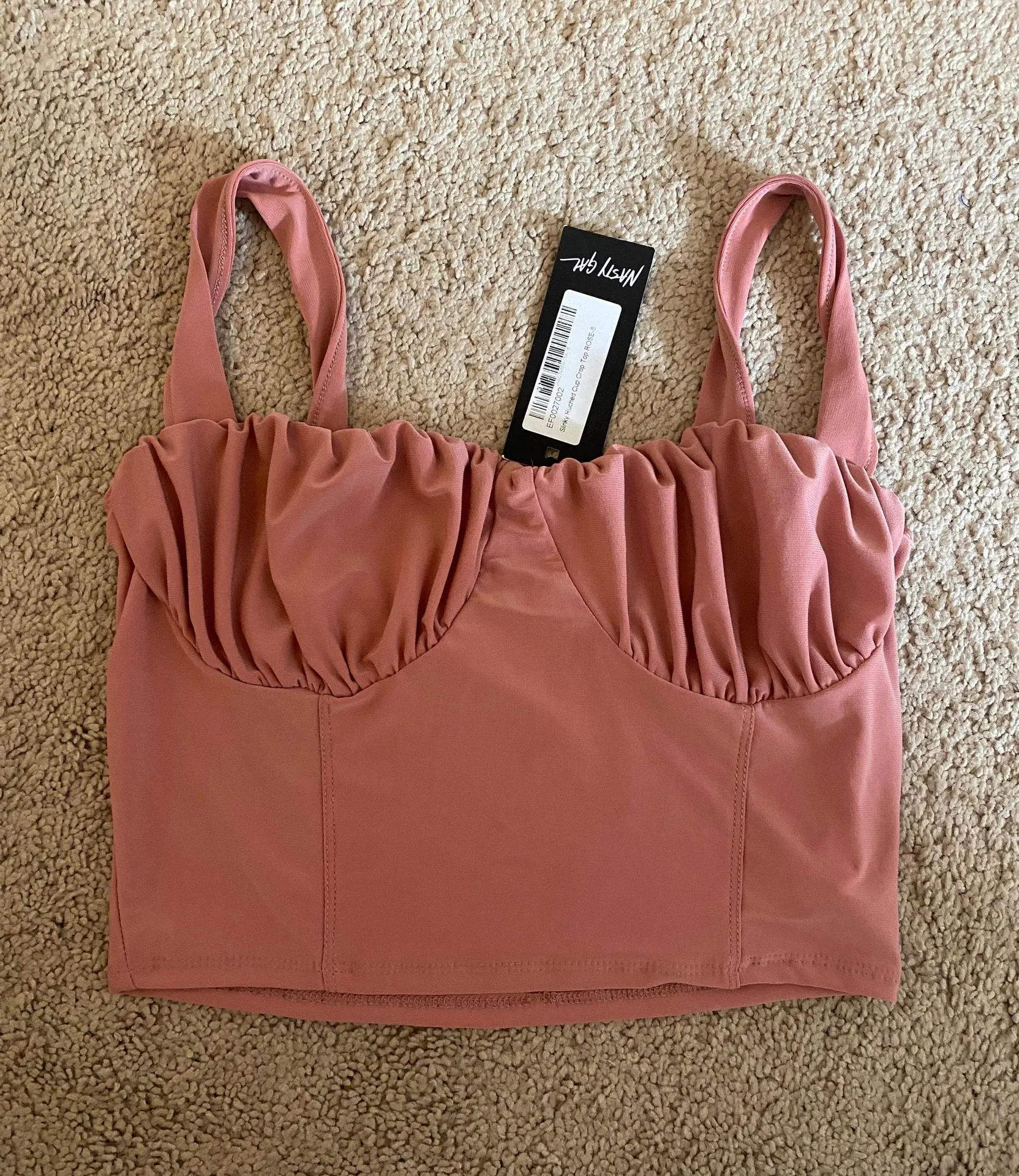 Brand new never worn. Pink/peach color top with scrunched design on cups