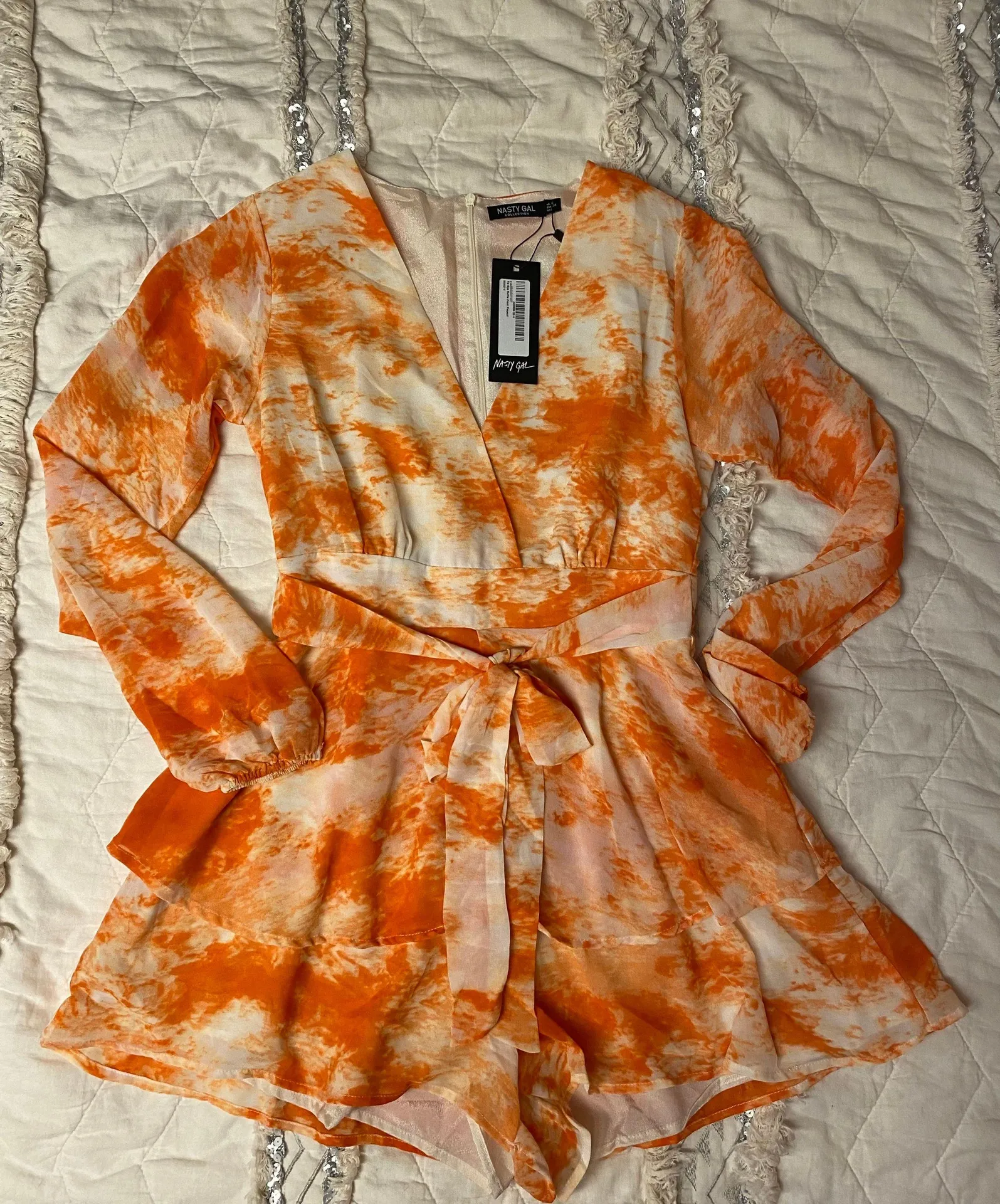 BRAND NEW WITH TAGS. never worn orange the dye playsuit. Soft material not very stretchy. Ruffle det... Show more