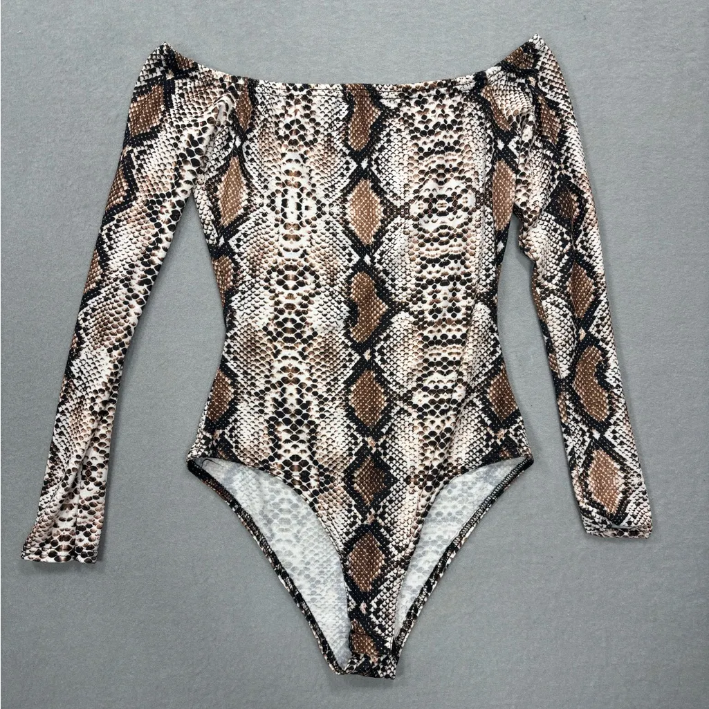 Nasty Gal snakeskin style long sleeved bodysuit in the size women's 4, which is a small. This bodys... Show more