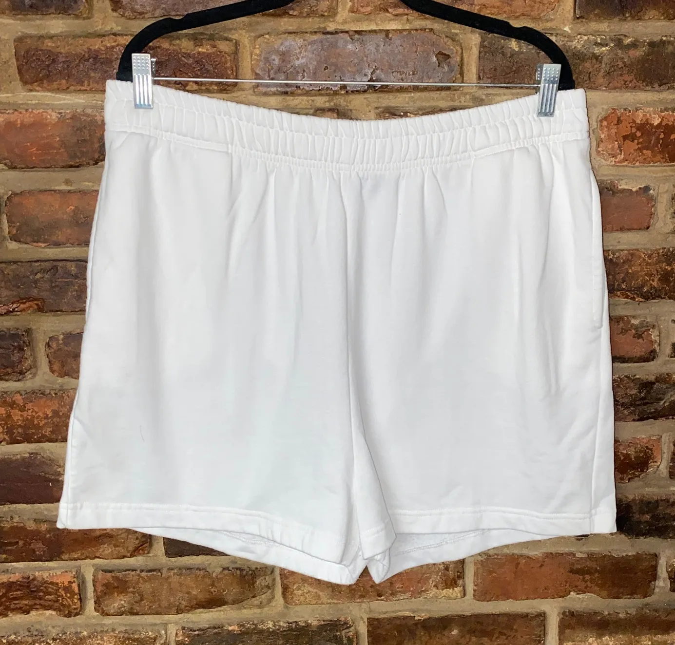 Please note there is some minor pilling Solid white Elastic waist Pull on styling Waist: 19" Rise:... Show more