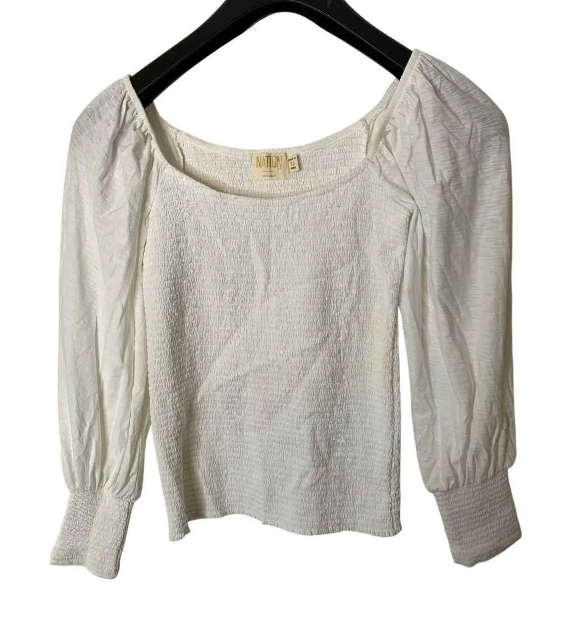 Nation Los Angeles white puffy sleeves cotton top women's size XS - $35 - From Jeremy
