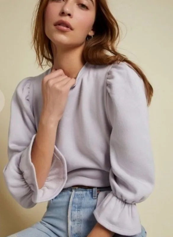 Nation LTD Daryl Puff Sleeve Sweatshirt Womens Size Large 100% Cotton Lavender Purple - $44 - From Stephanie
