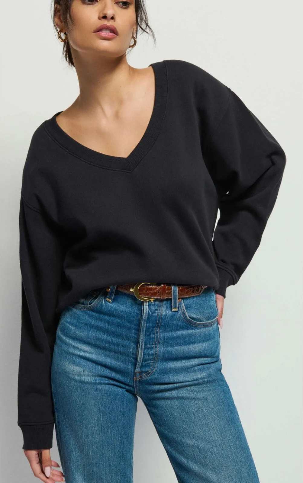 Nation Wyatt V-Neck Black Sweatshirt Classic Varsity Lounge Quiet Luxury Small - $50 - From Magpie