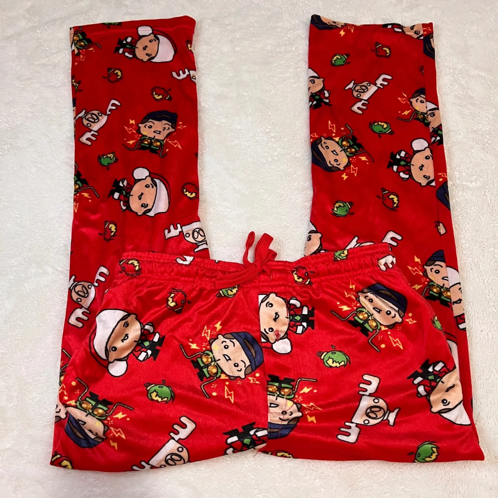 National Lampoons Christmas Vacation graphic sleep pants in red. These comfortable pajama bottoms feature an all-over print inspired by the classic holiday movie. Elastic waistband with drawstring and straight leg design for a relaxed fit. Perfect for lounging during the holidays or any cozy night in. Measurements: • Waist: 30 in • Inseam: 30 in • Outseam: 40 in Department: Unisex Adults Type: Pajama Pants Material: 100% Polyester, Polyester Fabric Type: Satin Theme: Cartoon, TV & Movie Characters Character: National Lampoon's Christmas Vacation Characters Character Family: Heroes Pattern: Graphic Print Features: Adjustable Season: Winter Closure: Drawstring Keywords: Christmas Vacation, Pajama pants, Sleepwear, Loungewear, Holiday, Festive, Graphic print, Comfy, Relaxed fit, Mens, Kohl's Ships 1-3 business days after purchase Comes from a pet free/ smoke free environment SKU:0006