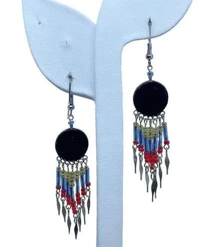 Native African Style Round Chandelier Earrings Seed Bead Fringe Hand-painted - $20 - From Jenns