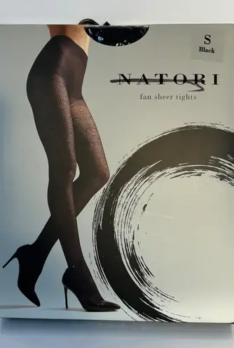 Natori fan sheer tights in black featuring a subtle geometric fan pattern. These tights offer a delicate, sheer finish with a comfortable fit. The pattern adds a touch of sophisticated detail to any outfit. The back of the packaging includes a sizing chart for reference. Style: Knitted Tights Type: Tights Opacity: Sheer Material: Polyamide Fiber, Spandex Theme: Ethnic Features: With Support Pattern: Geometric Toe Style: Full Toe Department: Women Occasion: Casual, Everyday, Glamour Season: All Seasons Number in Pack: 1 Pair Garment Care: Machine Washable Country of Origin: China Keywords: natori tights, sheer tights, patterned tights, black tights, designer hosiery, tights size s, geometric pattern, delicate hosiery, sophisticated tights, novelty tights, sheer legwear, fashion tights Fast shipper- most items ship within 1 day!