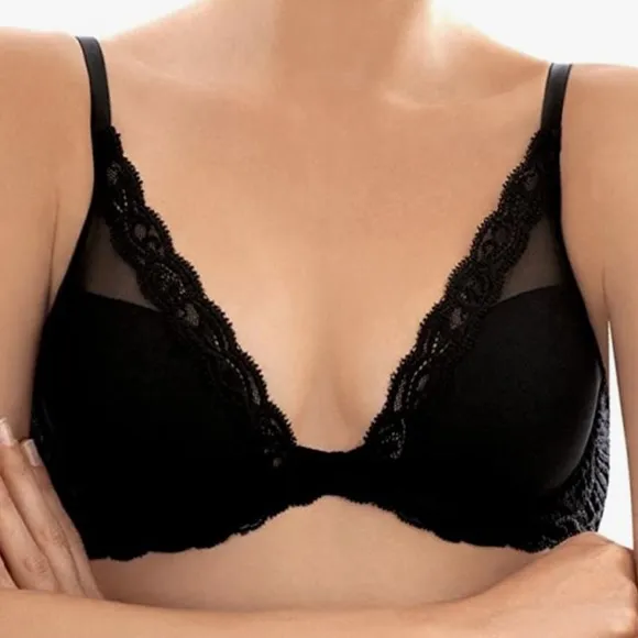 Natori Feathers Contour Plunge Bra black 36DD 36E new without tags NWOT Size 36 E / DD - $56 - From Rosalinda
