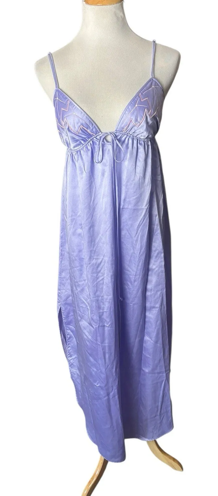 Natori Vintage Nightgown Day Dress Round Hem Purple Strapless Medium 80s Excellent Preowned Condition From Sax Fifth Avenue Rounded hem with slits on both sides Measures 51 inches top to bottom 18 inch slits 15 inches across bust unstretched (elastic bust) Items ship within 2 business days