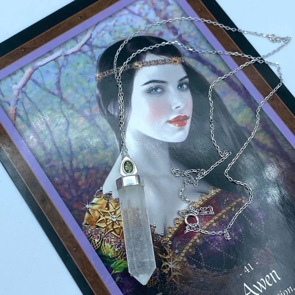 Natural Crystal Quarts Point & Faceted Moldavite Pendant Necklace 925 Stamped Solid Sterling Silver... Show more