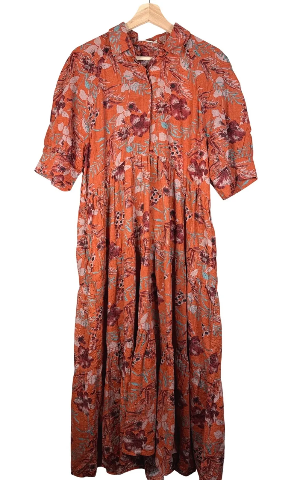 A flowing maxi shirt dress by Natural Life in an eye-catching orange hue with a vibrant floral print... Show more