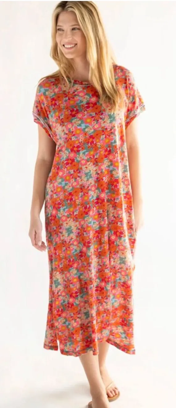 Natural Life Frankie Dress Size Medium Knit 100% Cotton Tee Midi Dress Floral Boho Lightweight Casua... Show more