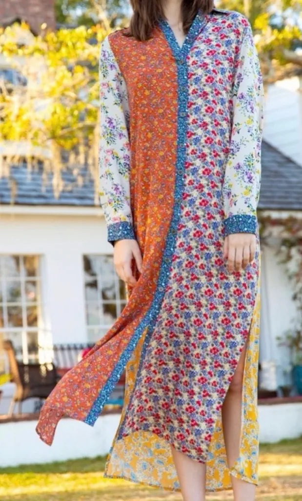 Natural Life Multicolor Patchwork Esme Floral Shirt Maxi Dress Kimono Medium NWT. Charming maxi dress with a vibrant floral patchwork print. Mix of orange, yellow, and blue colors. This versatile long sleeve dress can be worn as a kimono, duster cardigan or dress! New with tags.