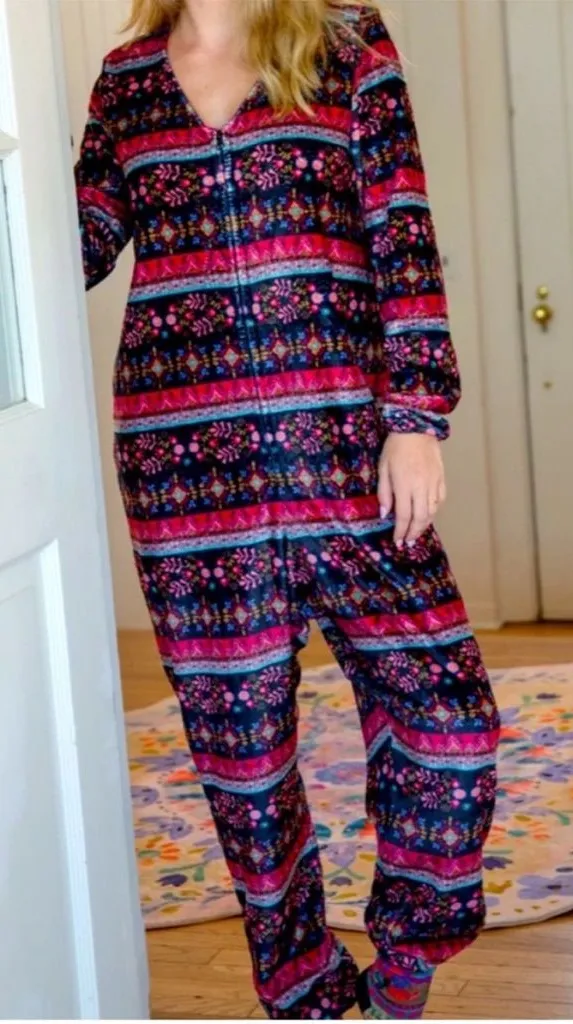— Gently used, no flaws Black pink red floral print — Soft fleece Zipper front Jogger ankle Long s... Show more