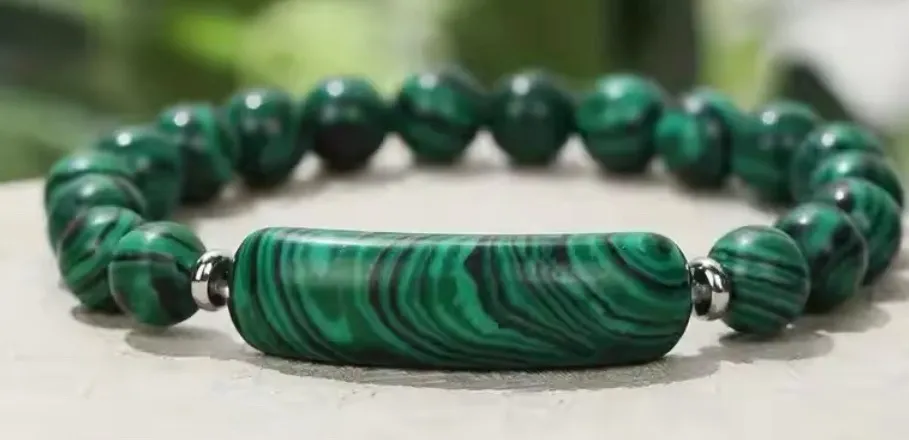 Natural Malachite Stone unisex Bracelet Hand made elastic 7.48 in Green - $14 New With Tags - From Laura