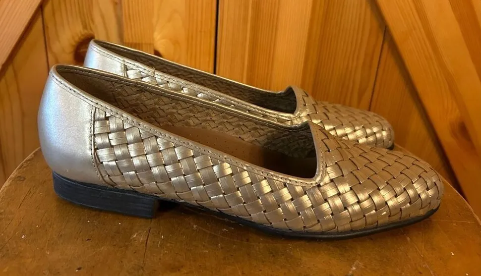 Naturalizer Woven Brazil Leather Ballet Flats Loafers Shoes Womens 7.5N Pewter Gold Size 7.5 - $32 - From Jessica