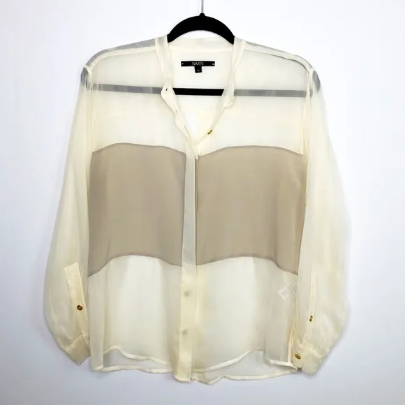 NAVEN sheer button down color block silk blouse Size M - $48 (75% Off Retail) - From Audrey