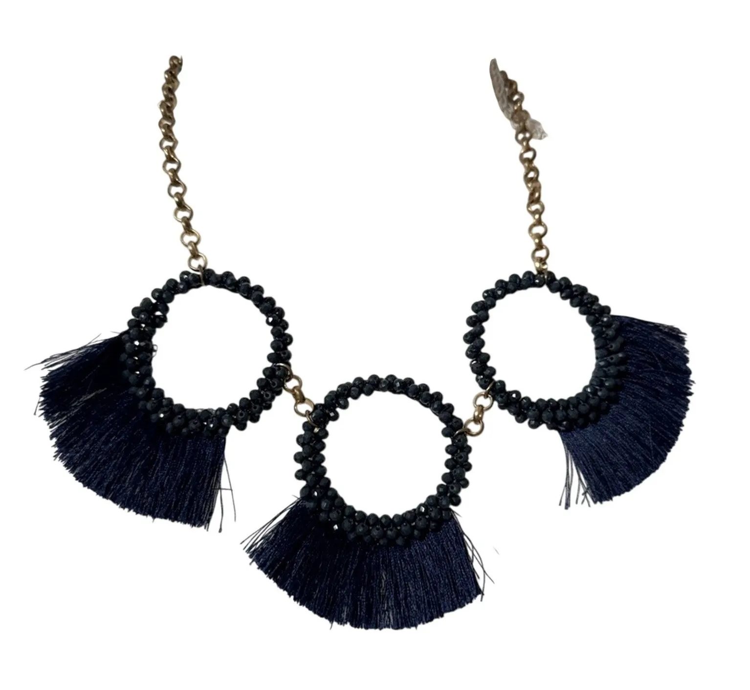 Navy Blue Gold Chain Tassel Statement Necklace Womens Jewelry Chunky Twee - $18 - From Lisa