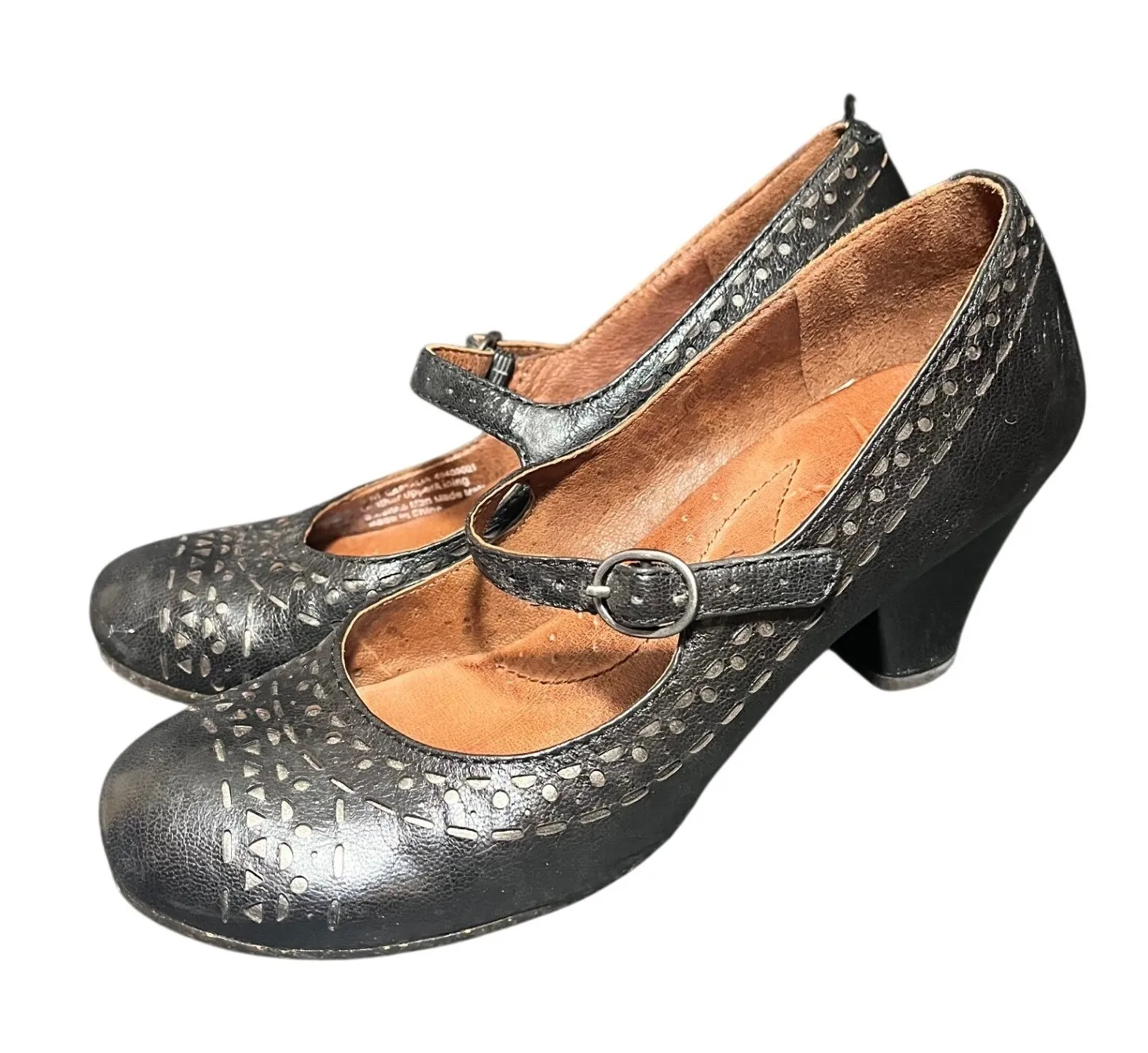 Naya Castalia Mary Jane Heels Pumps Black Leather size US 5 M Laser Cut - $29 - From Sophie