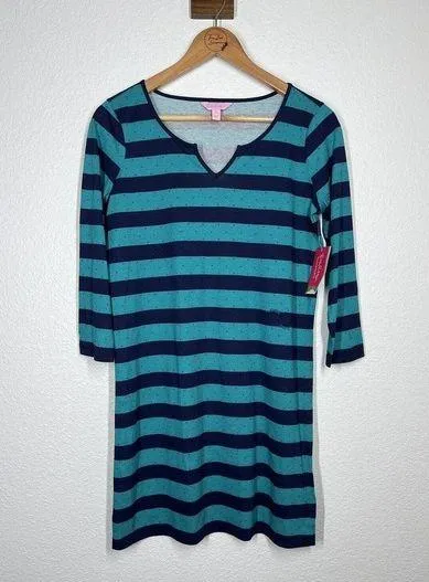 New with tag Size xs Lilly Pulitzer Gretchen dress in topaz blue/ polka dot stripes Unlined. Cott... Show more