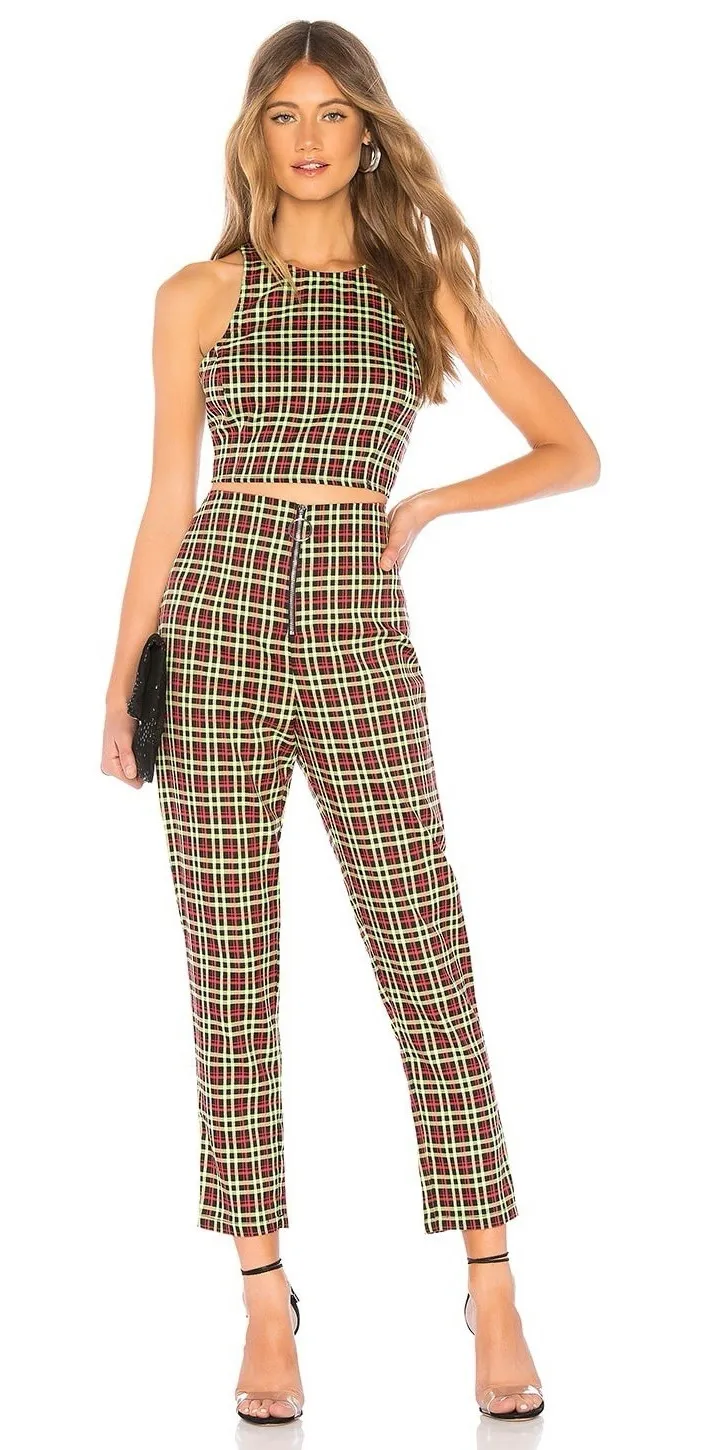 Bold and playful, this NBD x Naven matching crop top and pants set features a vibrant plaid print in... Show more