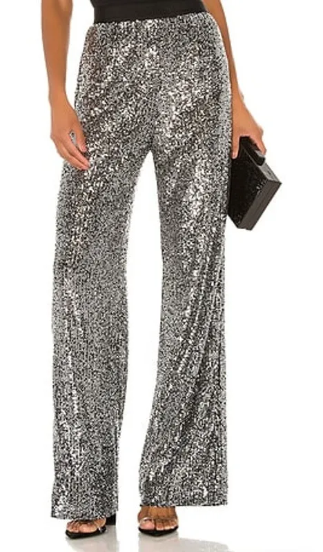 NBD x Revolve Saturday Love Silver Sequin Ultra High Waist Holiday Pants with side zipper and wide l... Show more
