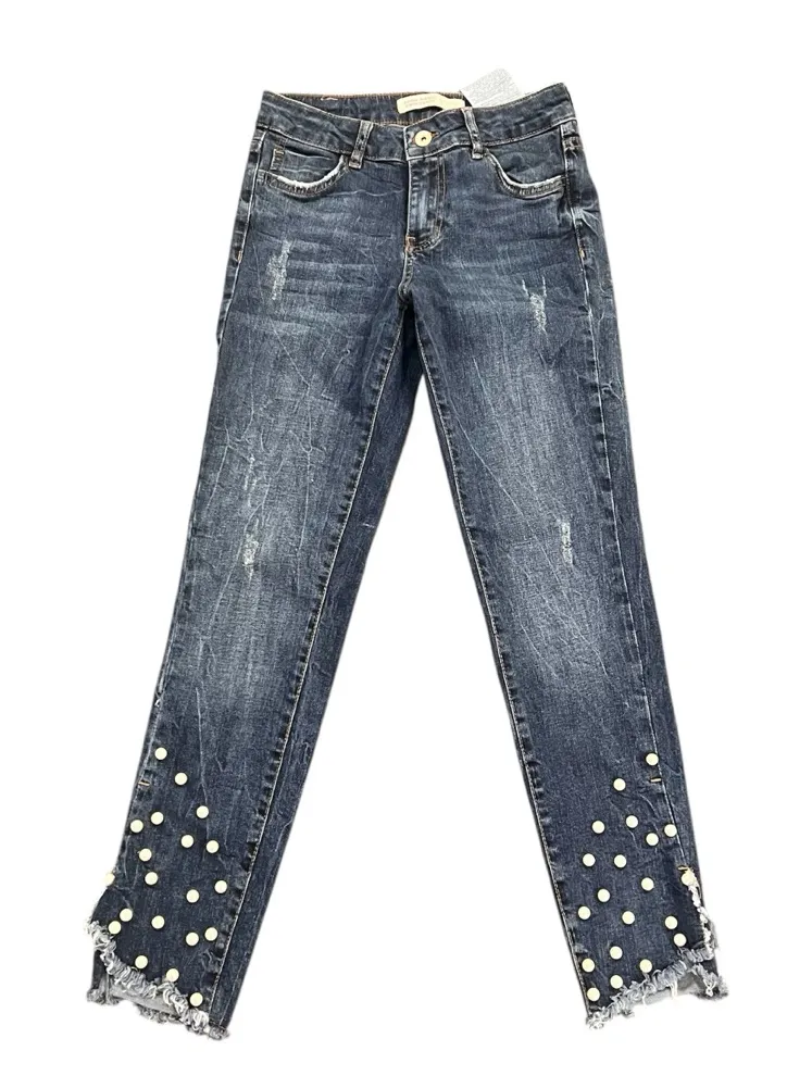 ZARA Women’s Size 2 Jeans Pearl Embellished Distressed Frayed Hem Denim Pants Modem ZARA women’s je... Show more