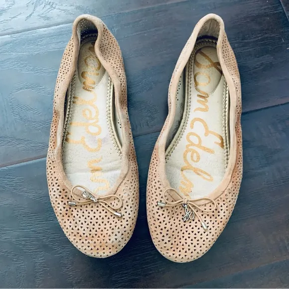 Sam Edelman Tan/Nude Felicia 2 Perforated Suede Slip-On Ballet Flats Size: 7.5 Good Condition