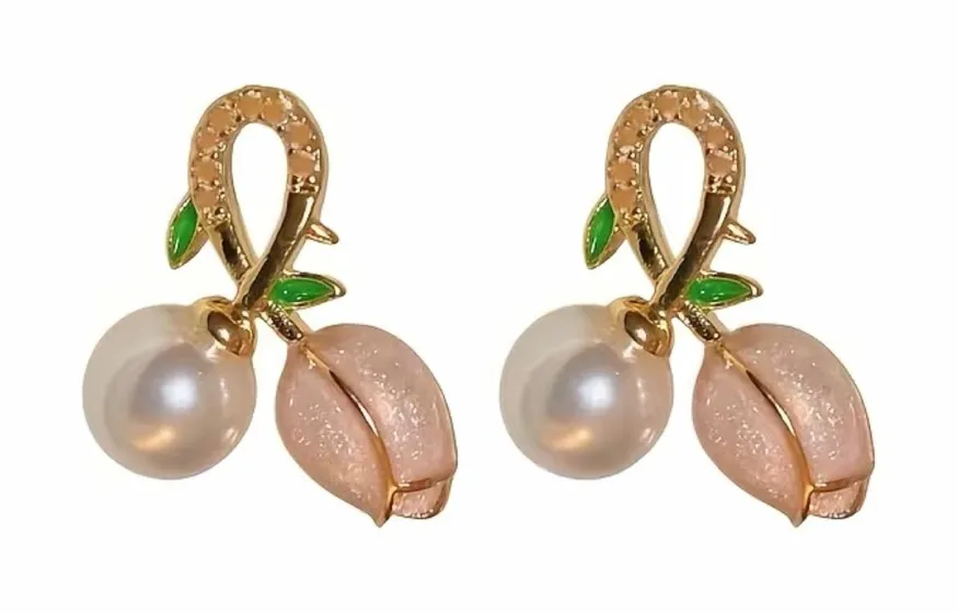 Needle Pearl Tulip Flower‎ Style Stud Earrings Gold Plated Faux Fashion Jewelry - $13 New With Tags - From Mon