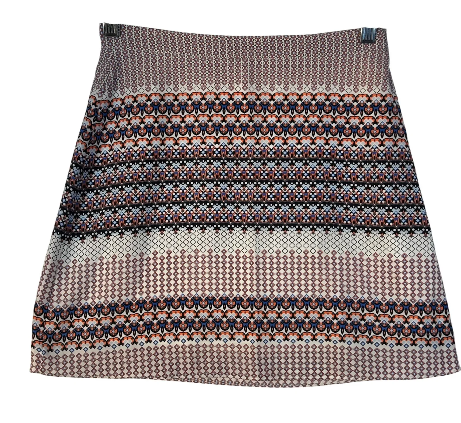 Nell A-line mini skirt with a vibrant geometric and tribal inspired print. This skirt features a comfortable elastic waistband and a lightweight feel. The skirt has no flaws on the outside but the inside lining hemline shows some slight stain discoloration. Measurements: • Waist (laying flat): 13 in (26 in total) • Length: 16 in Type: Skirt Style: A-Line Skirt Length: Short Department: Women Material: Polyester Pattern: Geometric Accents: Zipper Fabric Type: Knit Features: Stretch Theme: Southwestern, Aztec Closure: Zip Rise: Mid Occasion: Casual Season: Summer, Spring Garment Care: Machine Washable Country of Origin: United States Keywords: aline skirt, geometric print, tribal print, mini skirt, elastic waist, lightweight skirt, patterned skirt, casual skirt, daywear, summer skirt, spring skirt, made in usa, aline Fast shipper- most items ship within 1 day!