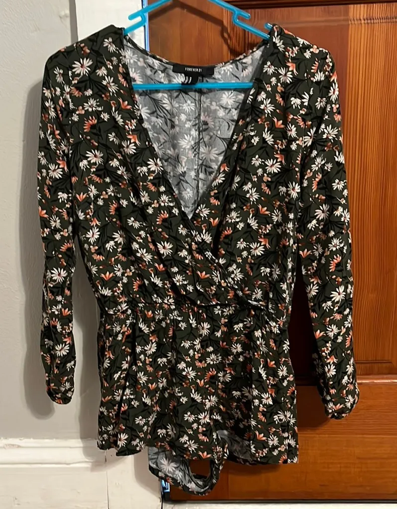 Never worn forever 21 floral green white and light pink romper. Size medium