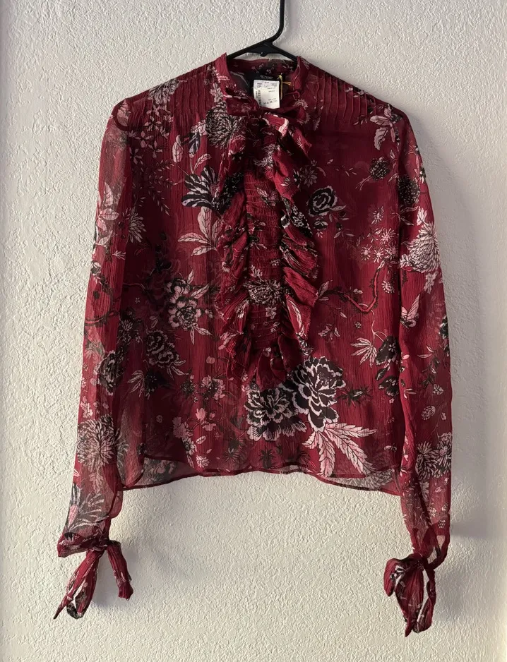 NEW $1060 ETRO Italy Floral Maroon Dark Red Sheet Silk Lightweight Blouse US 4 - $129 New With Tags - From Sarah