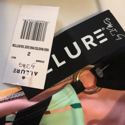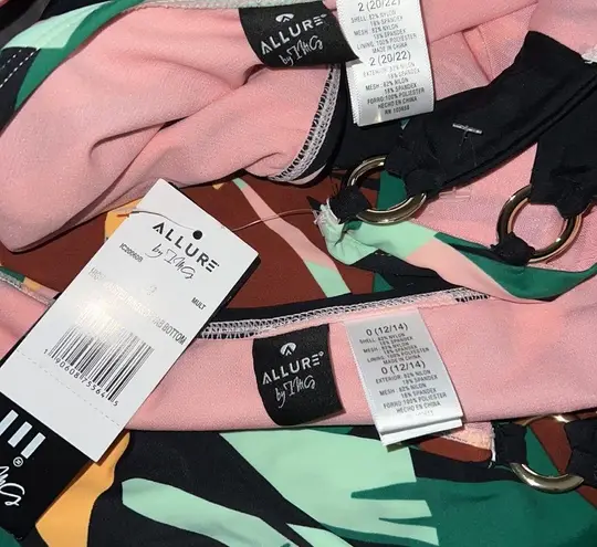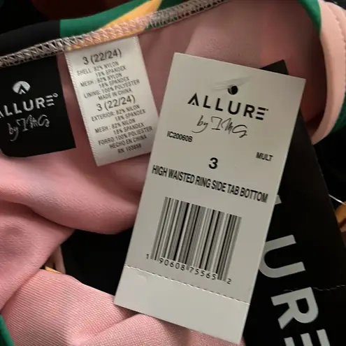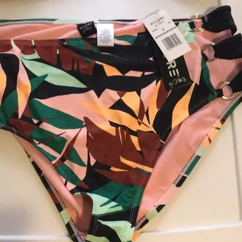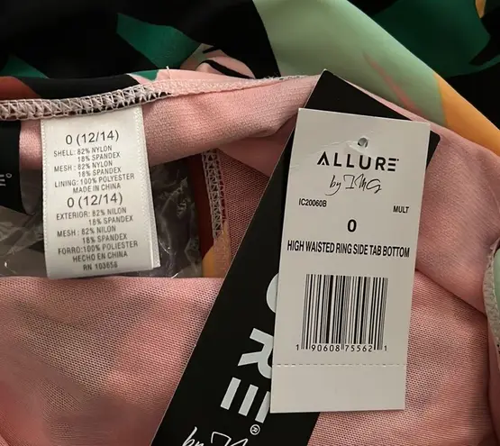 Questions? Leave a comment below! Allure By Img Floral High Waisted Bikini Bottom Sz 2X Size 2X 20/22W Ring side tab cut out caged detail 17” waist laying flat and 12” total length