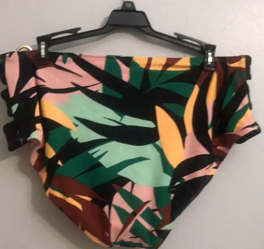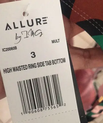 Questions? Leave a comment below! Allure By Img Floral High Waisted Bikini Bottom Sz 2X 3X Size 2X 20/22W. 3X 22/24 Ring side tab cut out caged detail 17” waist laying flat and 12” total length 19” waist 14” length 3X