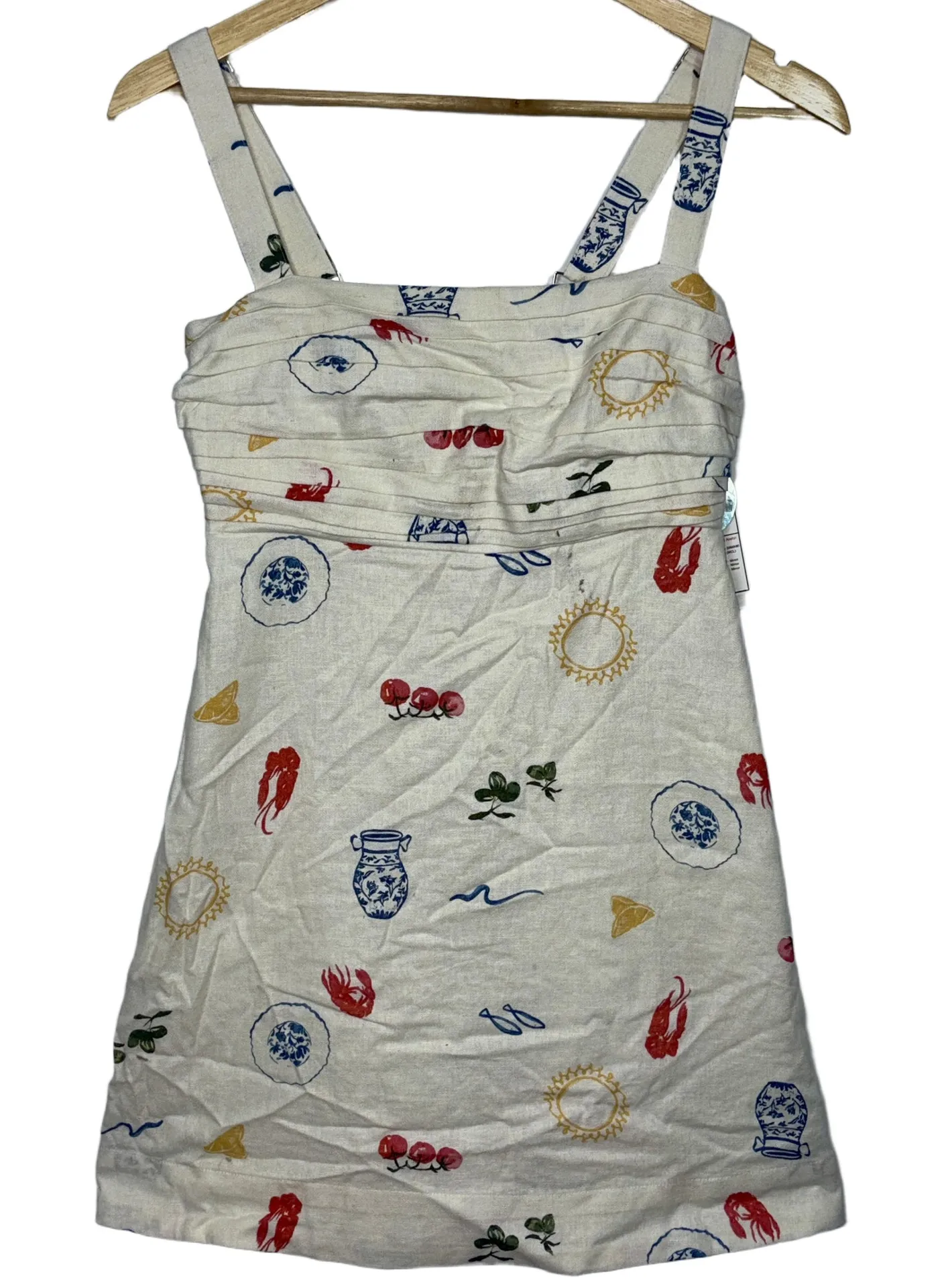 NEW Abercrombie & Fitch Cream Black Blue Red Yellow Linen Cotton Print Strappy Sundress Mini Dress Womens Size Small (S)