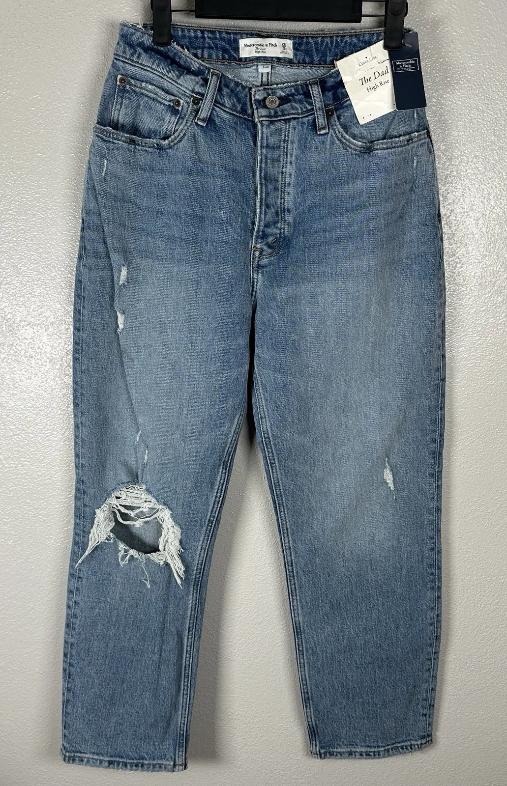 NEW Abercrombie & Fitch Curve Love The Dad High Rise Jeans Distressed 26/2XS Blue - $28 New With Tags - From HannahBThrifts