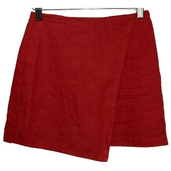 NEW NWOT Abercrombie & Fitch Red Linen Viscose Wrap Asymmetrical Hem Mini Skirt Womens Size XXS, Size Extra Extra Small, Size XX-Small, Size 2XS