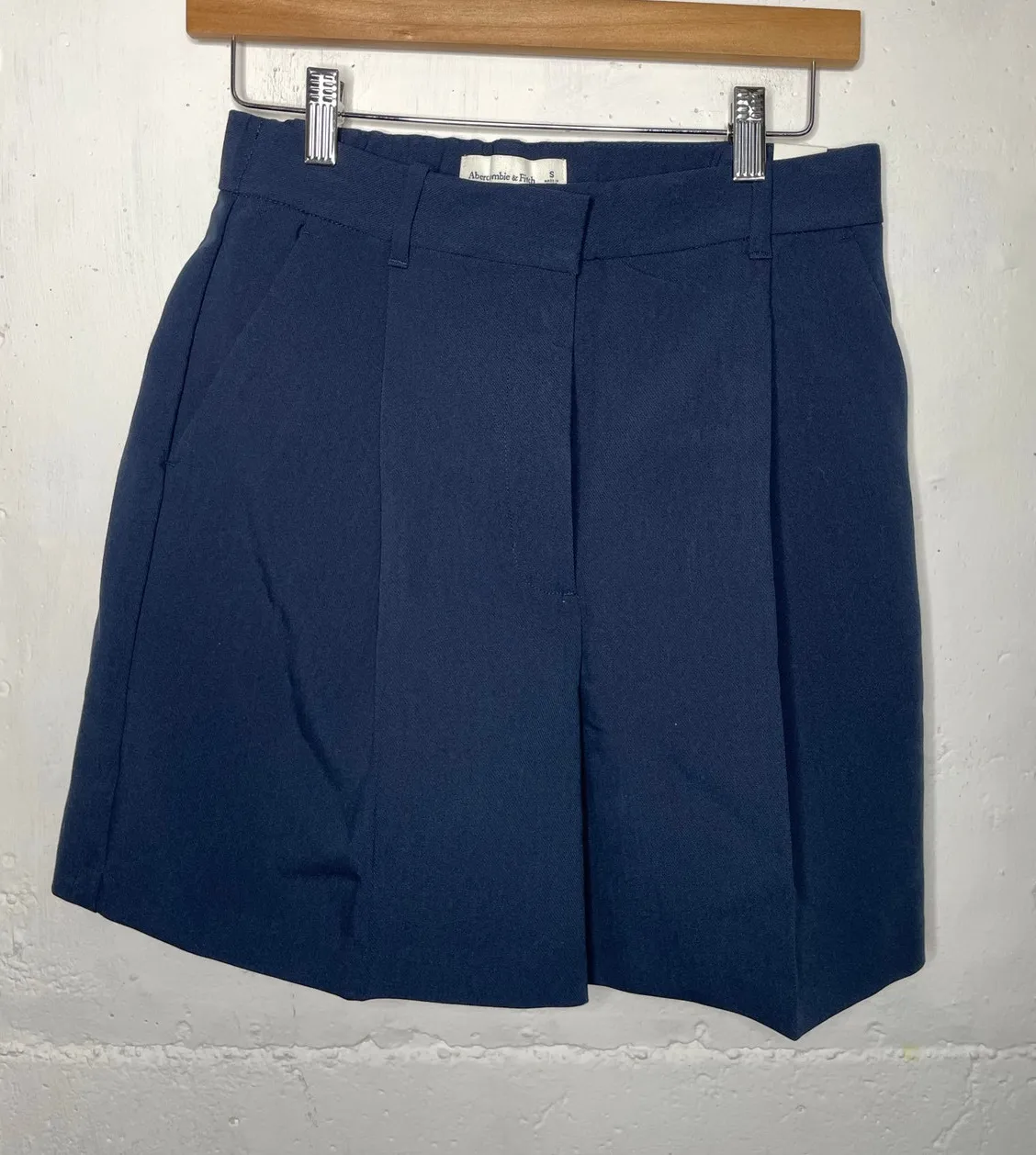 Abercrombie & Fitch Womens Navy Pleated Shorts Size Small High Rise Trouser brand new with tags