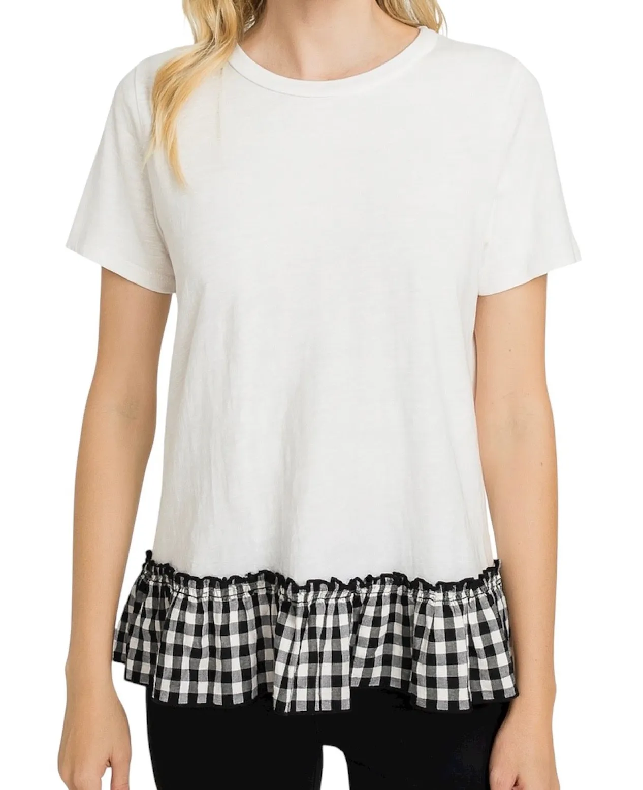 After Market gingham ruffle hem crewneck short sleeve t-shirt. Pullover. Crew neckline. Short sleeve... Show more