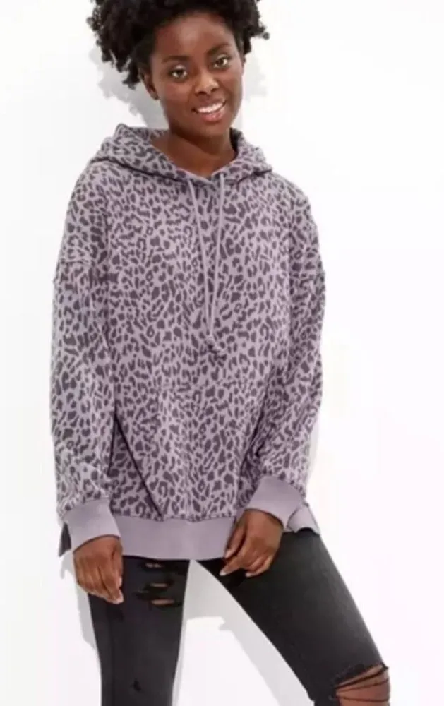 NEW American Eagle Purple Black Cheetah Jegging Oversized Hoodie Women’s XS Measurements- Pit to Pit... Show more