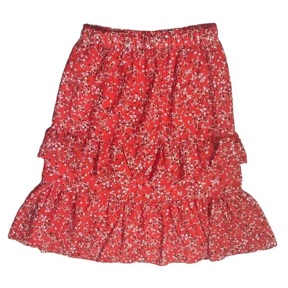Elevate your style with this Ann Taylor tiered maxi skirt. Featuring a vibrant red floral pattern an... Show more