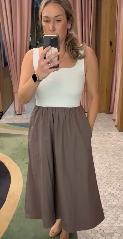 Aritzia Babaton Dress Revive Dress Fit-And-Flare Cotton Midi Dress with Contour Bodice Turner Taupe... Show more
